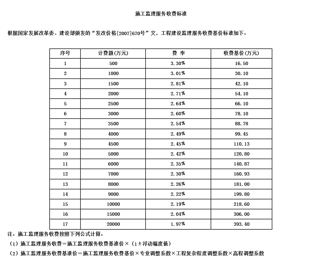 工程监理费计费规则