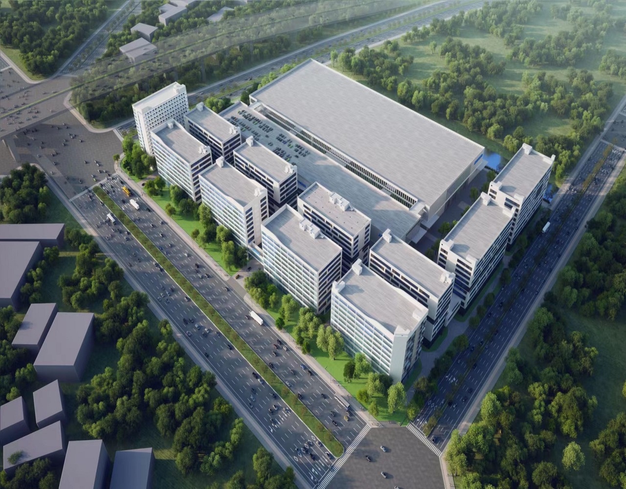 总建筑面积约36万㎡,建设有9栋9层高高标准现代厂房约20万㎡,2栋江河幕墙自用生产厂房约14万㎡,1综合楼约2万㎡,总投资超30亿元。