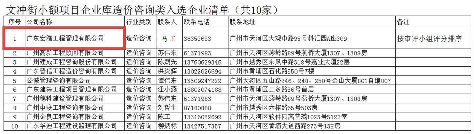 附件:文冲街道办事处小额建设工程招标代理企业库入库企业公示名单